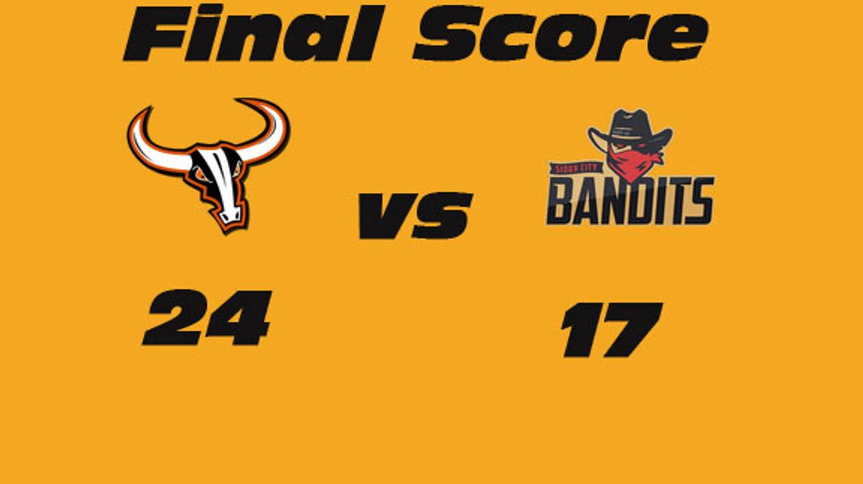 Both teams got on the scoreboard with their kickers hitting their first field goal of the season as Greg Conry hit one from 38 yards with 7:41 remaining in the first quarter and Caleb Shudak hit a 26 yarder with 2:27 remaining in the first quarter. Sioux City would get the first touchdown of the night when Verlon Reed hit Damond Powell on a 30-yard strike to get the Bandits a 10-3 lead after the first quarter.